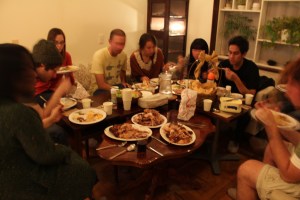 Last Thursday, after nearly a month of prep and organization, we finally had our big, ALT Thanksgiving. Naturally, anyone was welcome, and by the looks of it, our Japanese friends really enjoyed the cultural experience.