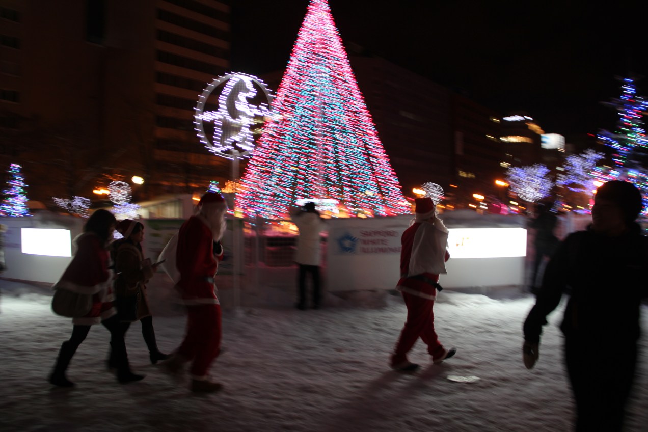 Santas walking around town